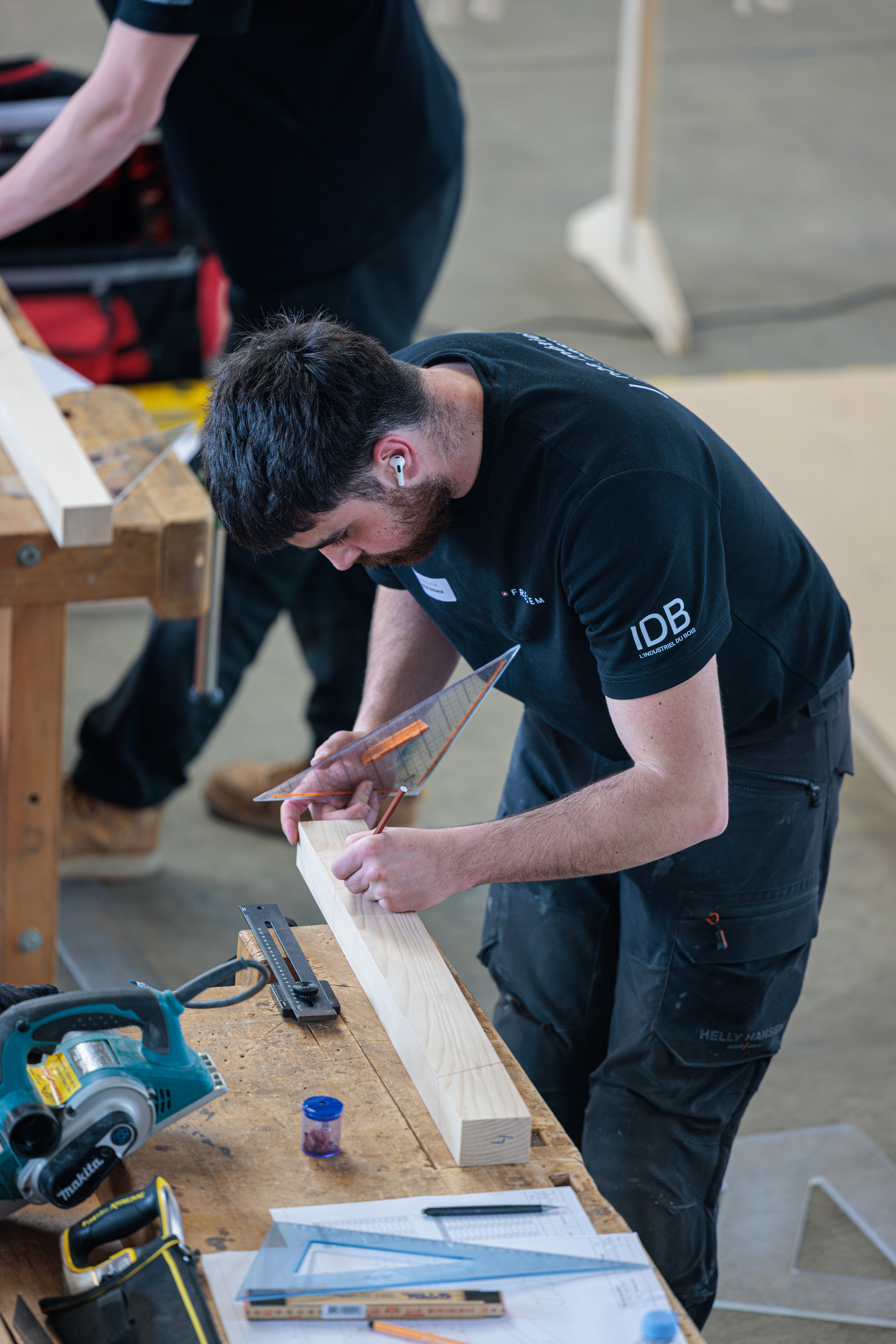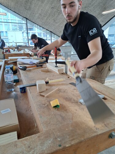 Les tâches de concours de charpenterie sont toujours composées; de la recherche des vraies grandeurs par une épure manuelle au moyen de la géométrie ou du calcul, du traçage des pièces de bois, de la taille de ces pièces de bois puis finalement de l’assemblage de la maquette.