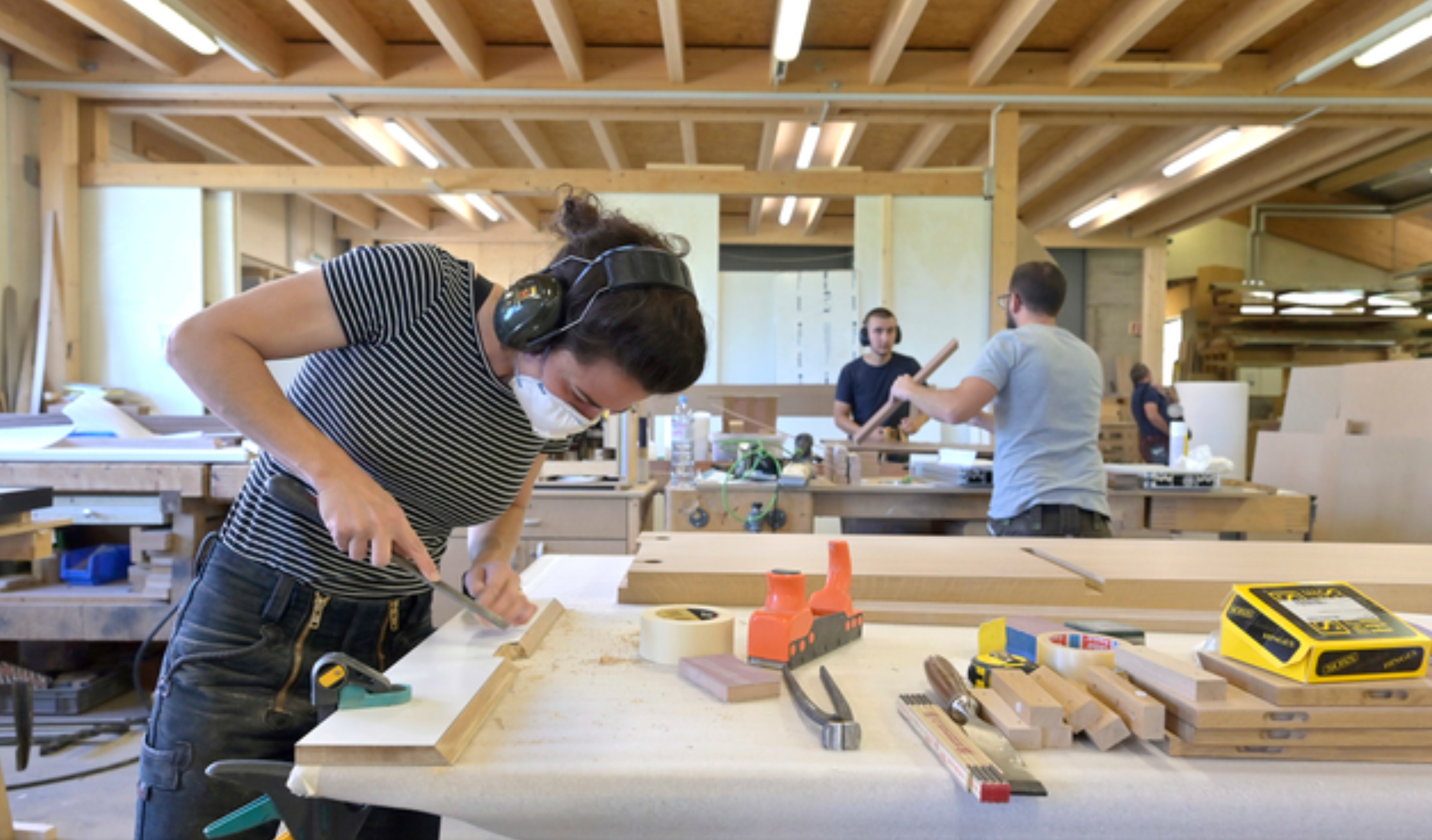 Dans un atelier de menuiserie-ébénisterie, les apprentis découvrent tout le processus de création :